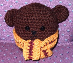 I am finding that I like the sphere shaped animals and this one is fun. I am making another bear in white with a scarf next but I need to buy more safety eyes. I think I may get Mario done as a top before Christmas.