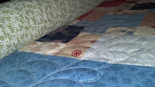 April 23, 2013April 23, 2013 mycreativecorner3-Vicki H. Feathers! I finished Mom’s quilt with feathers. I love how it turned out. The feathers fit with the paisley in this fabric. I had way too much backing fabric on it, I must have made a calculation error….. more fabric to load a small quilt on the frame! Vicki Share this: Share on X (Opens in new window) X Share on Facebook (Opens in new window) Facebook Email a link to a friend (Opens in new window) Email Share on Pinterest (Opens in new window) Pinterest Like Loading...