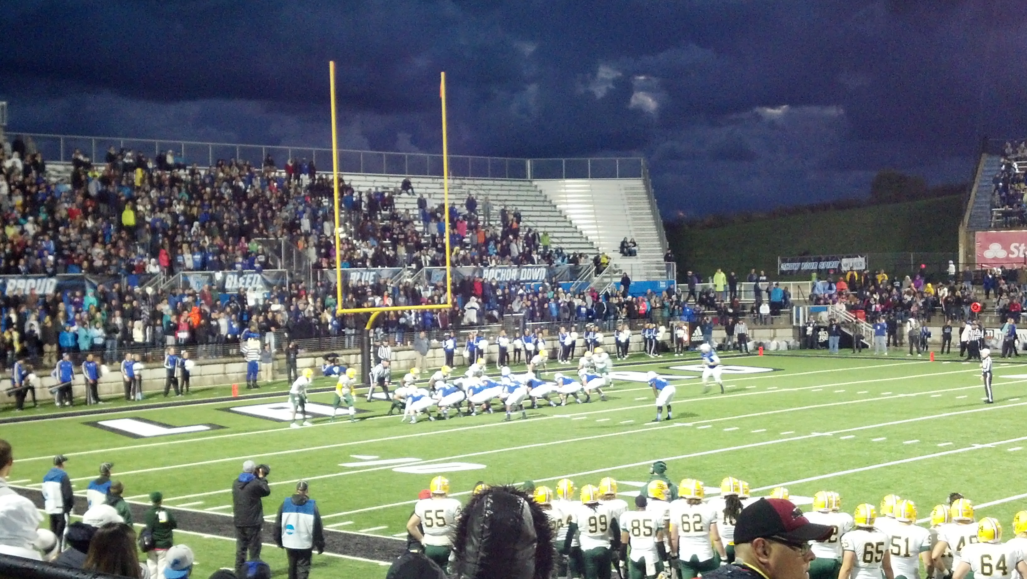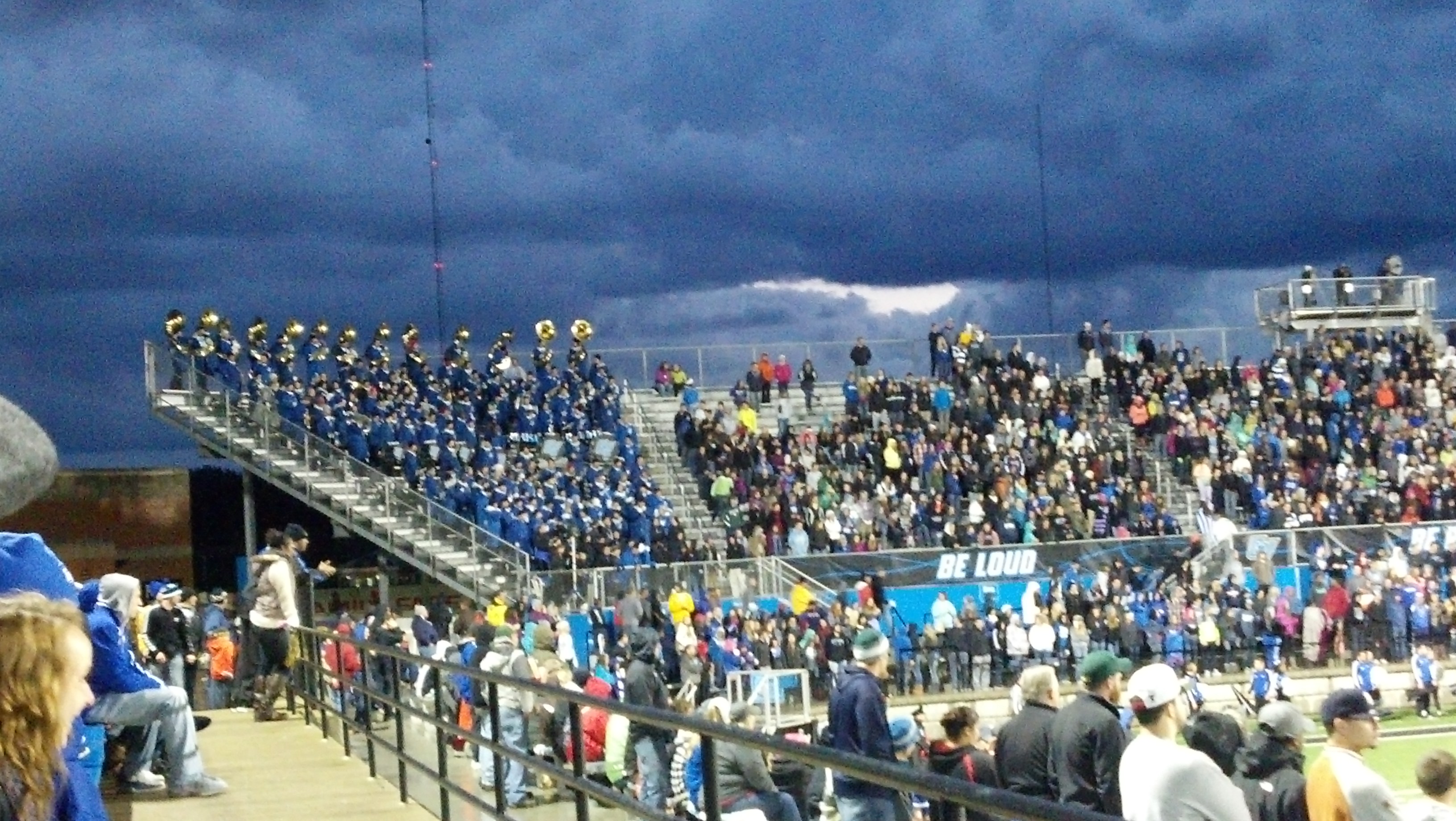 But then the thunder and lightning started in the fourth quarter. The stadium cleared. But we won.