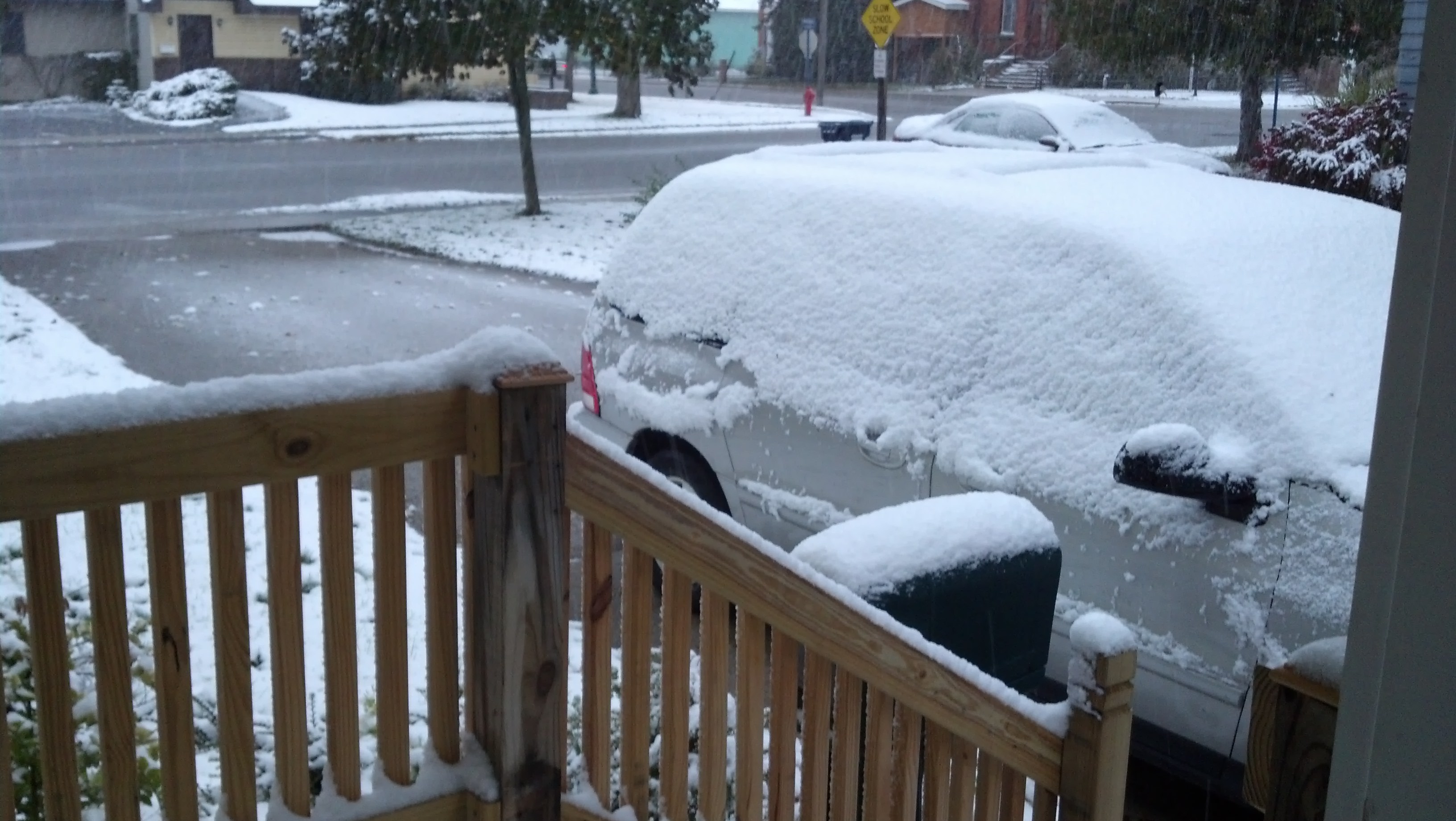 And it continued through out the day, however, it melted off before evening. So glad, because I don’t have any boots and I need to get a pair. Honestly, I am not ready for this. I fear this will be a long winter. The short daylight hours are here, too. Ugh, October.