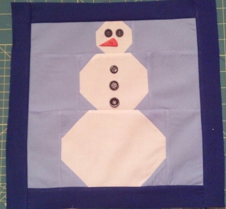 This is an easy block to do, whoo hoo there are some beginner blocks in this magazine!! The eyes and nose are a button set. I found them at Joann’s. I couldn’t find cardinal buttons and the arms are embroidered. I didn’t do add the embroidery as I long arm my quilts and I didn’t want any embellishments on the block permanently. I like the arms but I like an armless snow man better!
