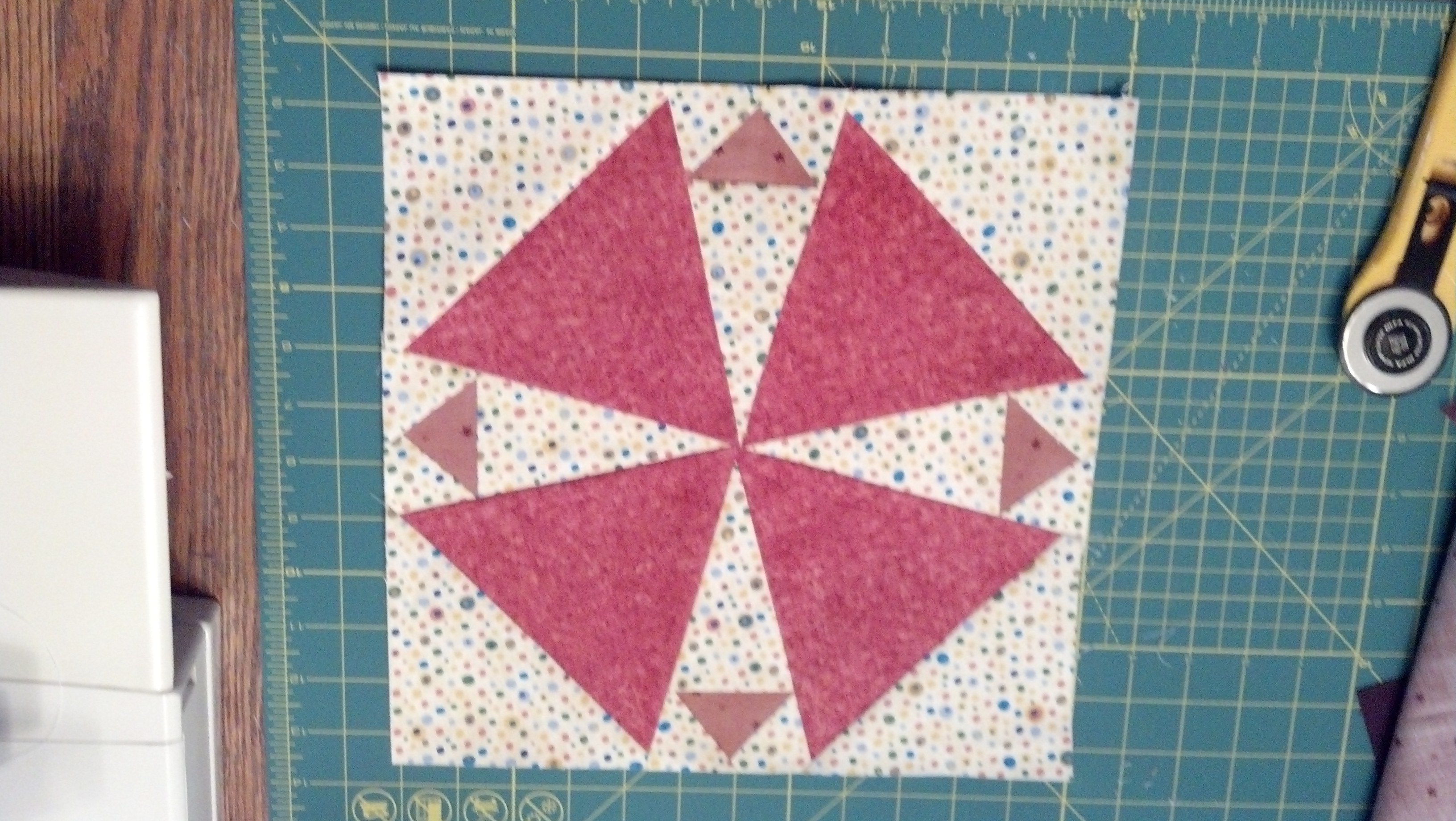 Paper piecing this block made it a snap! I like the colors in this one and I learned that sometimes you need to pin or use a Clover clip to make the center line up properly.