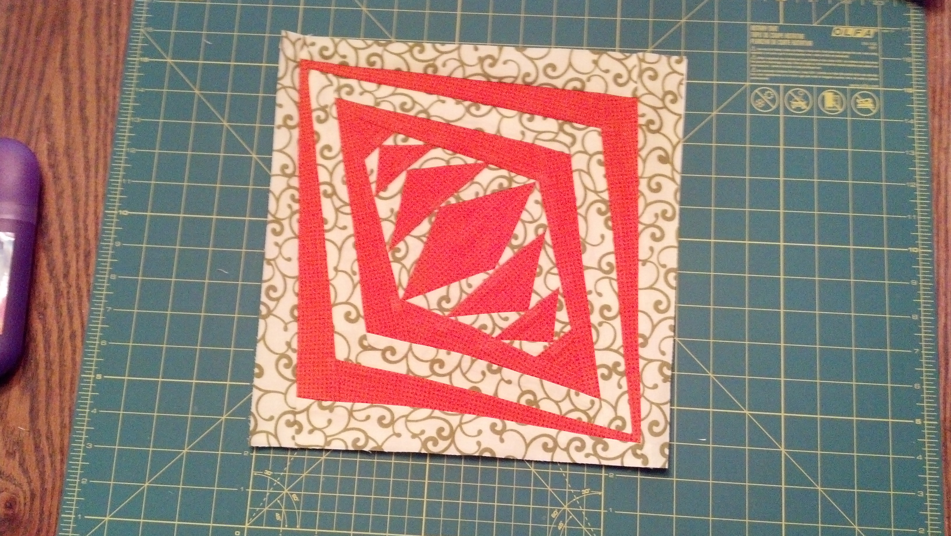 Block 723. This is paper pieced and as you can tell I didn’t understand what “reverse foundation” meant. Oops, it was a lovely block once I figured that out! Would make a great 4 block medallion center of a quilt!