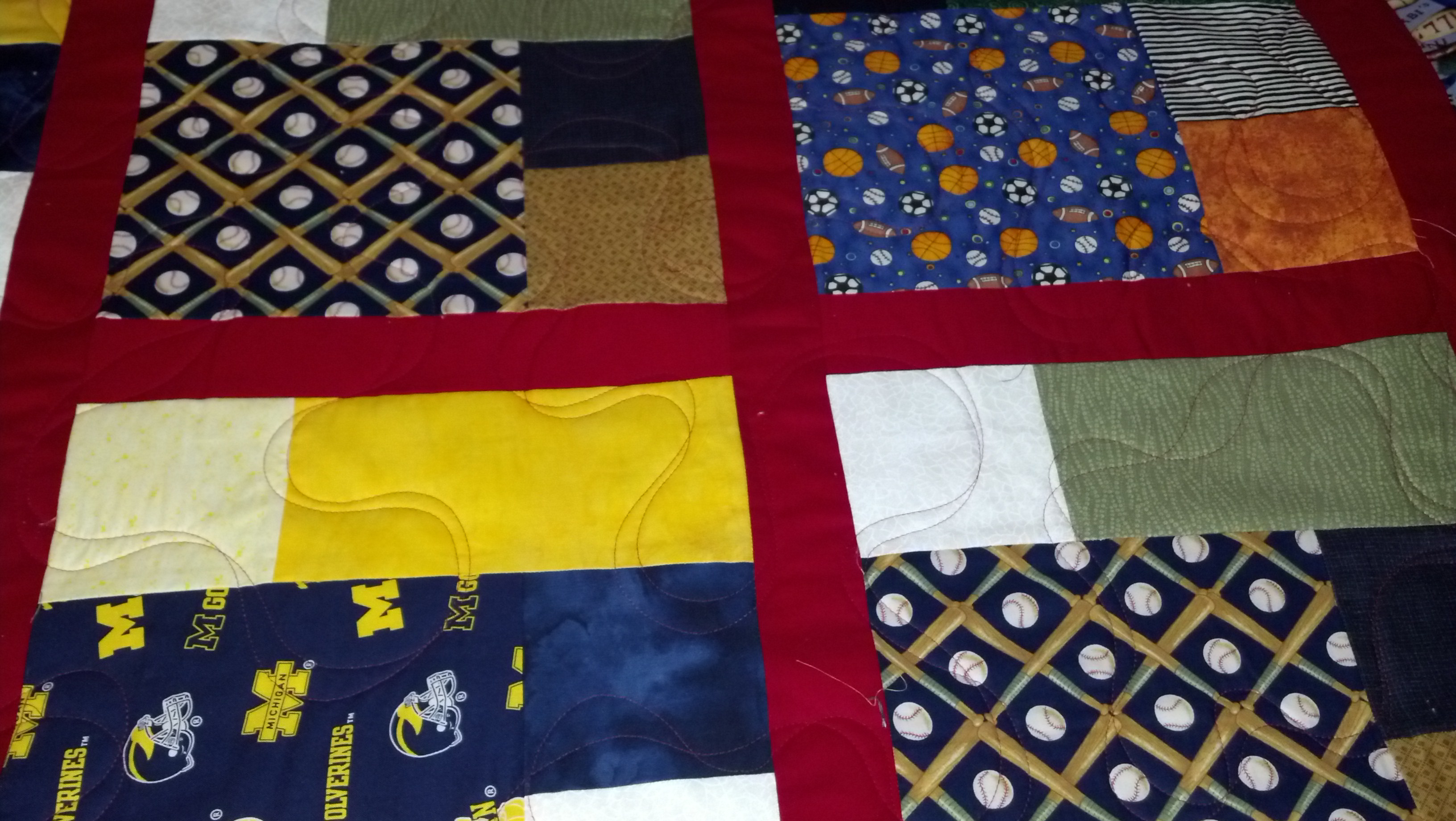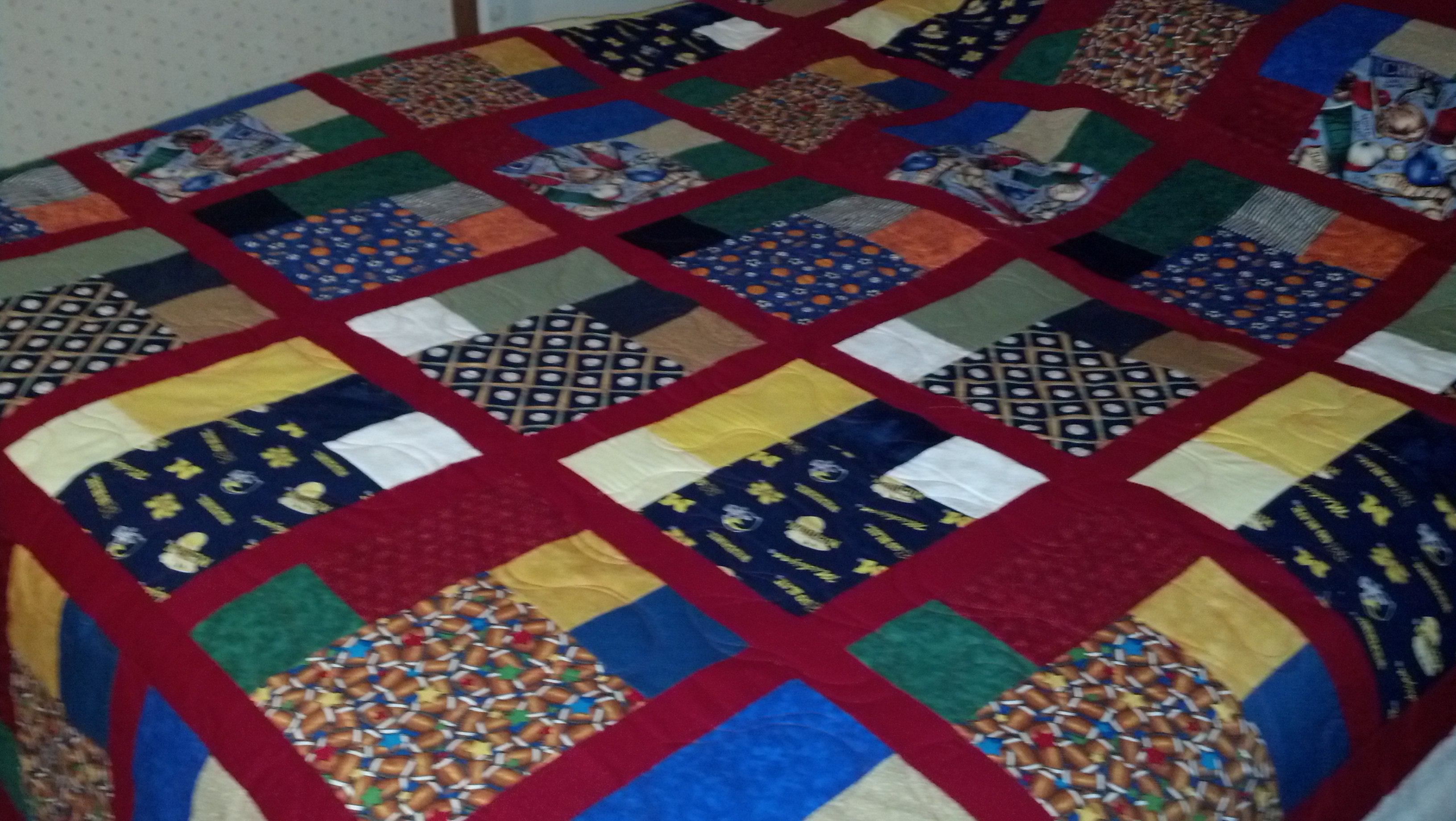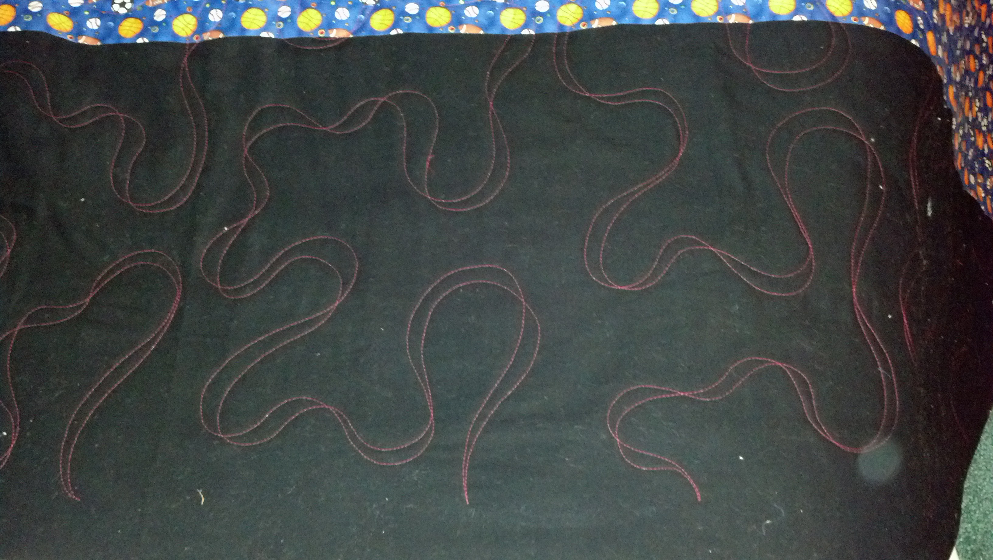 December 17, 2013 mycreativecorner3-Vicki H. Carol’s last Christmas surprise And I love the surprise on how the red thread looked on this quilt. It looks very rock and roll on the black fabrics. I think that it will be treasured!!! Carol you are a rock star, three quilts for Christmas presents, awesome!!!! Share this: Click to share on X (Opens in new window) X Click to share on Facebook (Opens in new window) Facebook Click to email a link to a friend (Opens in new window) Email Click to share on Pinterest (Opens in new window) Pinterest Like Loading...