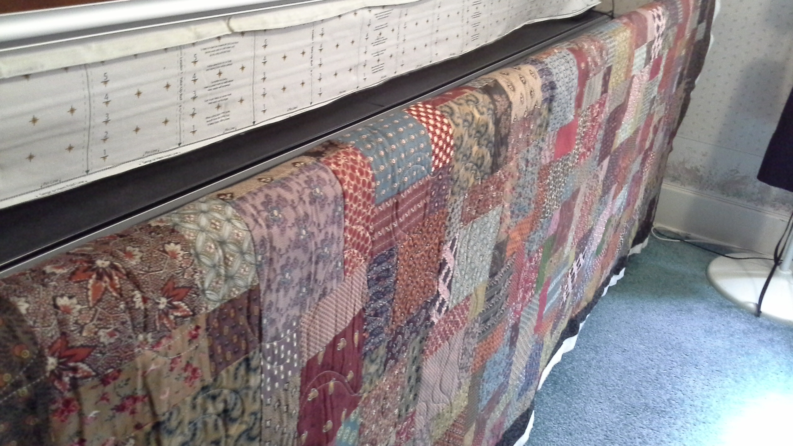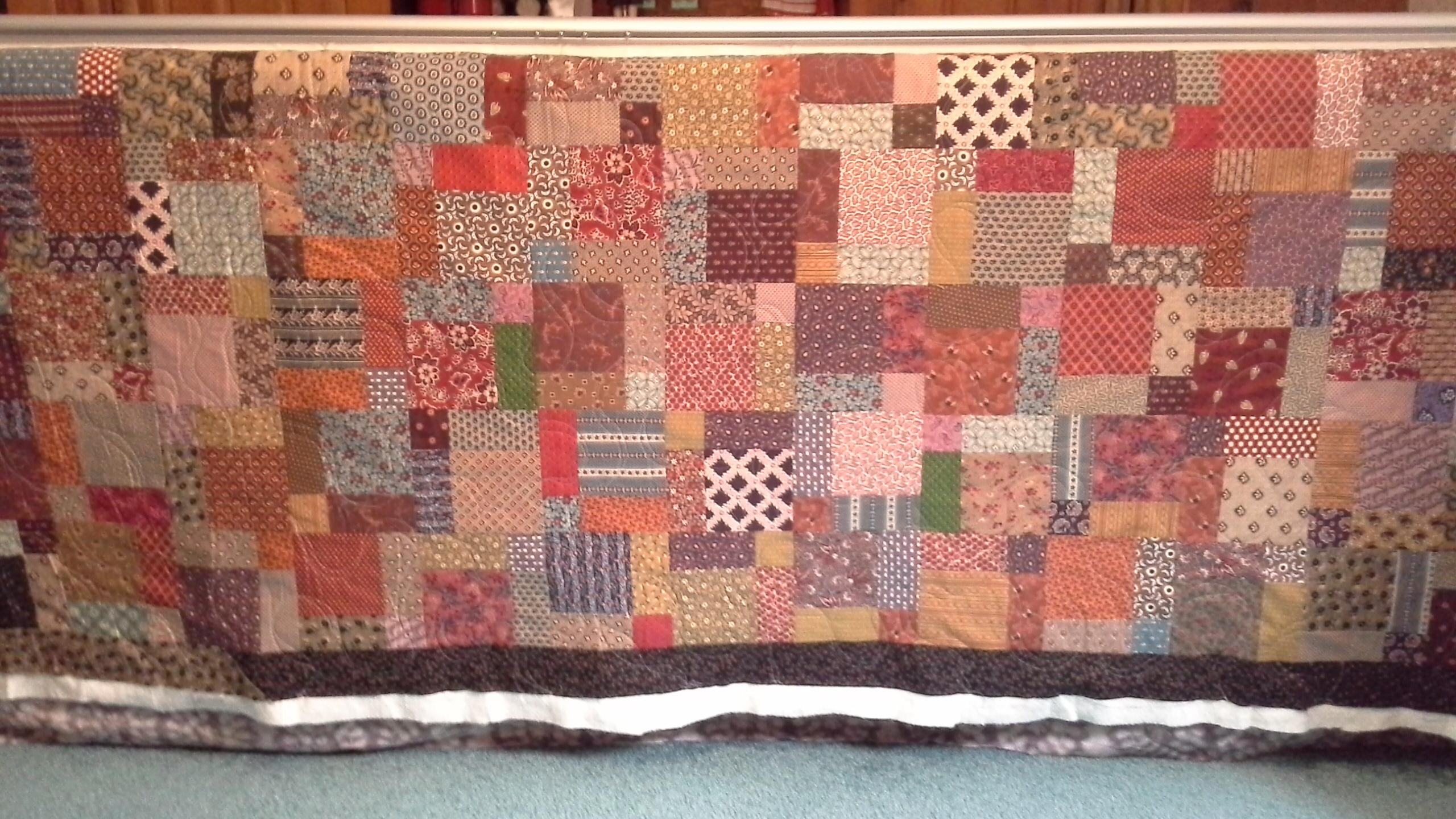 I did get some things done this weekend. I made several economy blocks in bright colors. See first picture. I finished a customer quilt in a double stipple. I grocery shopped, went to a little home show in town, went to hobby lobby for batting and wandered around, cleaned up the house, did laundry, watched several basketball games and spent an embarrassing amount of time on the computer and social media….