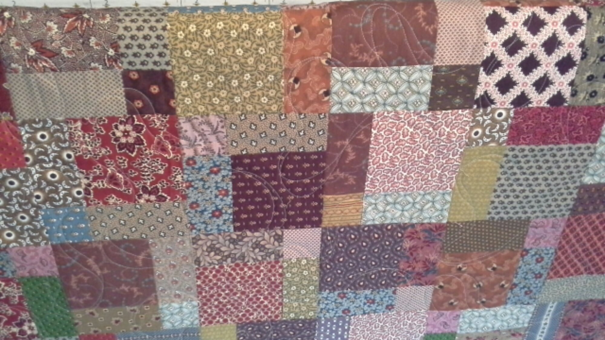 I sit behind customer quilts and look at them closely for a long time while I long arm them. I couldn’t help but notice the beautiful fabrics chosen for this Civil War reproduction d9p quilt. It amazes me how these reproduction prints are really very modern. They are on a smaller scale, but they still have a very modern feel. I guess that’s why I like civil war reproduction fabric so much and why I also like to use modern fabrics. If you look very closely at each of these little blocks you will see what I mean, they could be used in modern quilts if they were larger scale and had brighter colors. I guess everything that is old is really new again is my grandmother used to say.