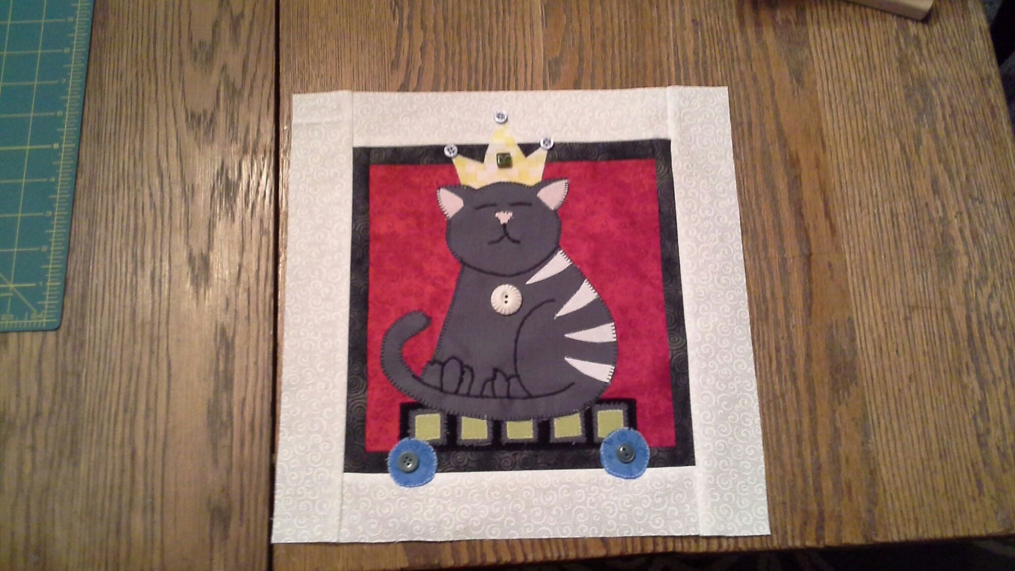 The Queen. This is not a block I would choose to do on my own. But it is adorable and went together so nicely! I learned how to satin stitch details and everything! I have to say thanks again to quiltmaker magazine for allowing me to test blocks.