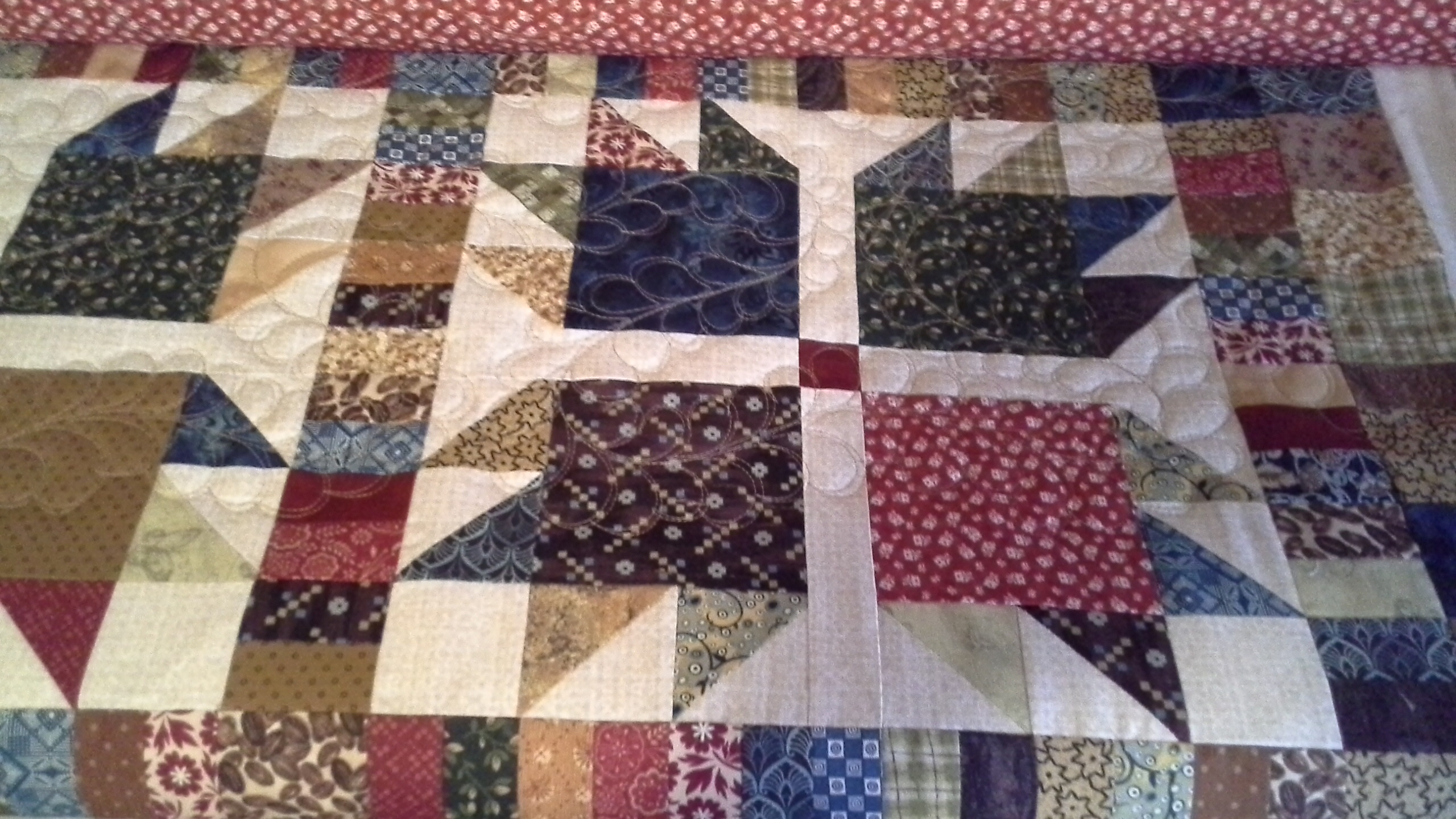 I am long arming a lot. I have a twin quilt nearly finished and I have its sister quilt to do. I am trying to have all the customer quilts caught up. I have several family quilts as well as some of my own that I want to do nothing but crazy stuff on them…. customers don’t aways appreciate my free motion custom work, lol. It really is crazy!