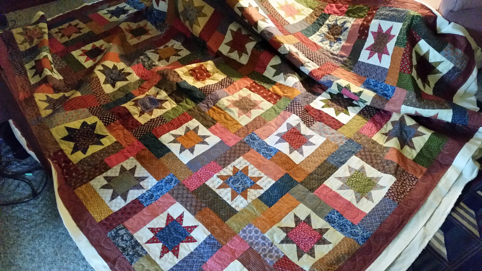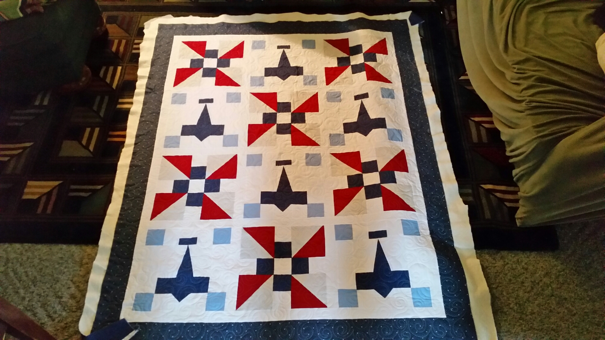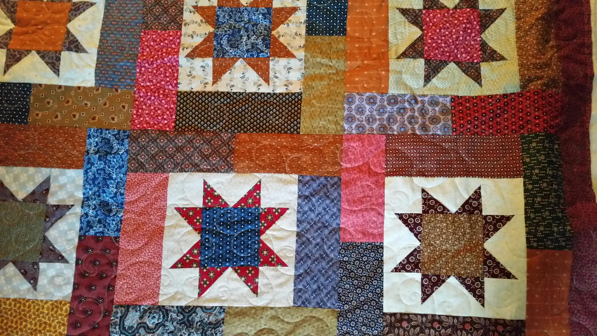 I want to share what I have been quilting lately. I have quilted three quilts for Allison. She has been so busy. The star quilt is a queen sized quilt. It is so luxurious with rich fabrics. I quilted it in all over curls. The last two quilts are such adorable little baby quilts for her newest grandchild. I really love them too. The airplanes has overall swirls to represent clouds and the train quilt is in a double stipple to look like tracks. I hope to do more quilts Allison, love your work!!!