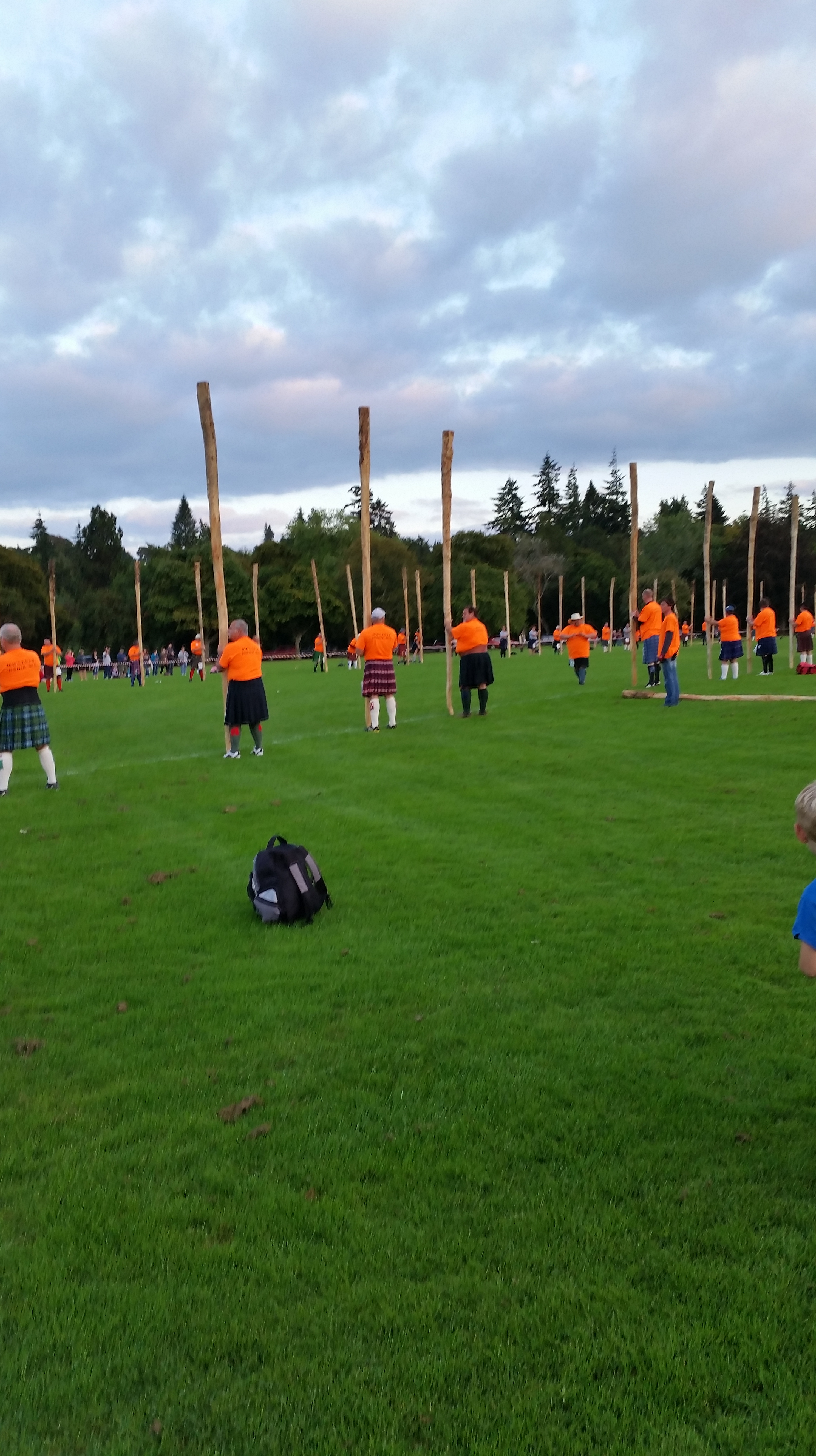 After the games were completed there was a bonus. The Guinness Book of World records were there to officiate an attempt at the new world record for simultaneous caber toss. And they did it, they counted 66 cabers turned at the same time, even though over 100 people participated. So much fun, there was a lot of pomp and circumstance involved including a big tron so everyone could see how it looked. The you tube link is here.