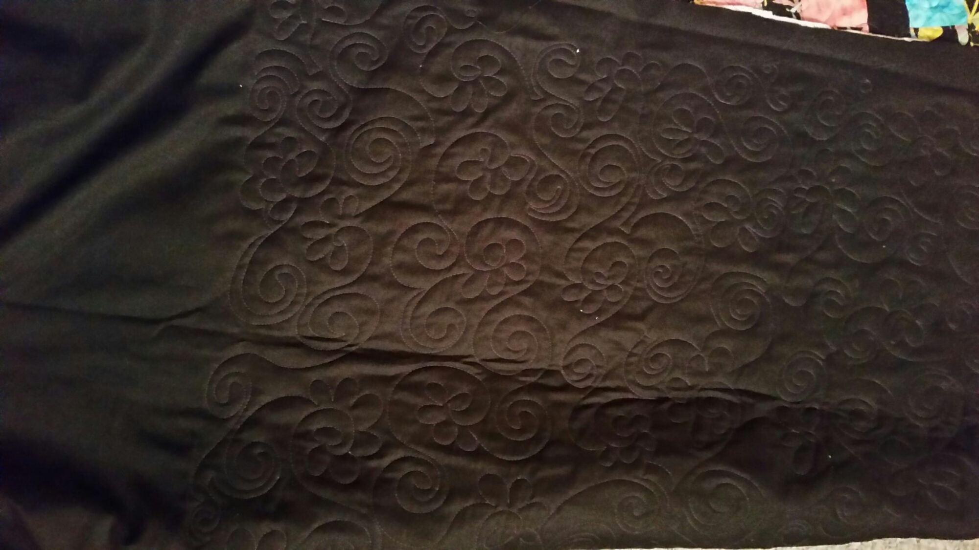 I made a flower and spiral pattern. I love how the purple stands out but doesnt litter the stars. It turned out to be a sweet quilt! Sucha great project to be a part of.