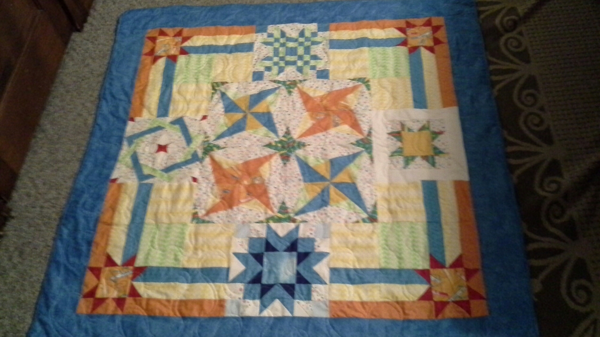 I have am going to put up a tutorial once a week here on this blog that will teach you how to make a quilt. There will be pictures and links to some videos that I will post on my Facebook page. I think that a sampler quilt is a perfect way to learn many skills and have a great quilt at the end. I would encourage you to get a bag of scraps that are 100% cotton. You could buy several fabrics ( 4 or 5) in half yard cuts. It is very important that you pick 100% cotton. I don’t shop exclusively at quilt shops but they carry the best fabrics, usually. But other big chains can have some very nice quilting fabrics too but not all cotton fabrics are created equal. I touch the fabric and hold it up to the light. If it is too thin, it won’t last so pass on it.