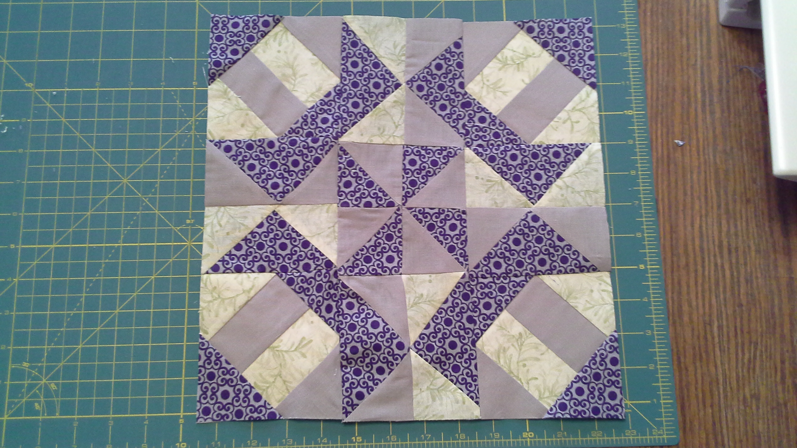 The second block is E. Dackson on page 28. It is really a fun pinwheel block called Whirl around. I love the movement in this block. It is foundation pieced and a snap to make. It love paper piecing and get very excited when they are on my list to test.