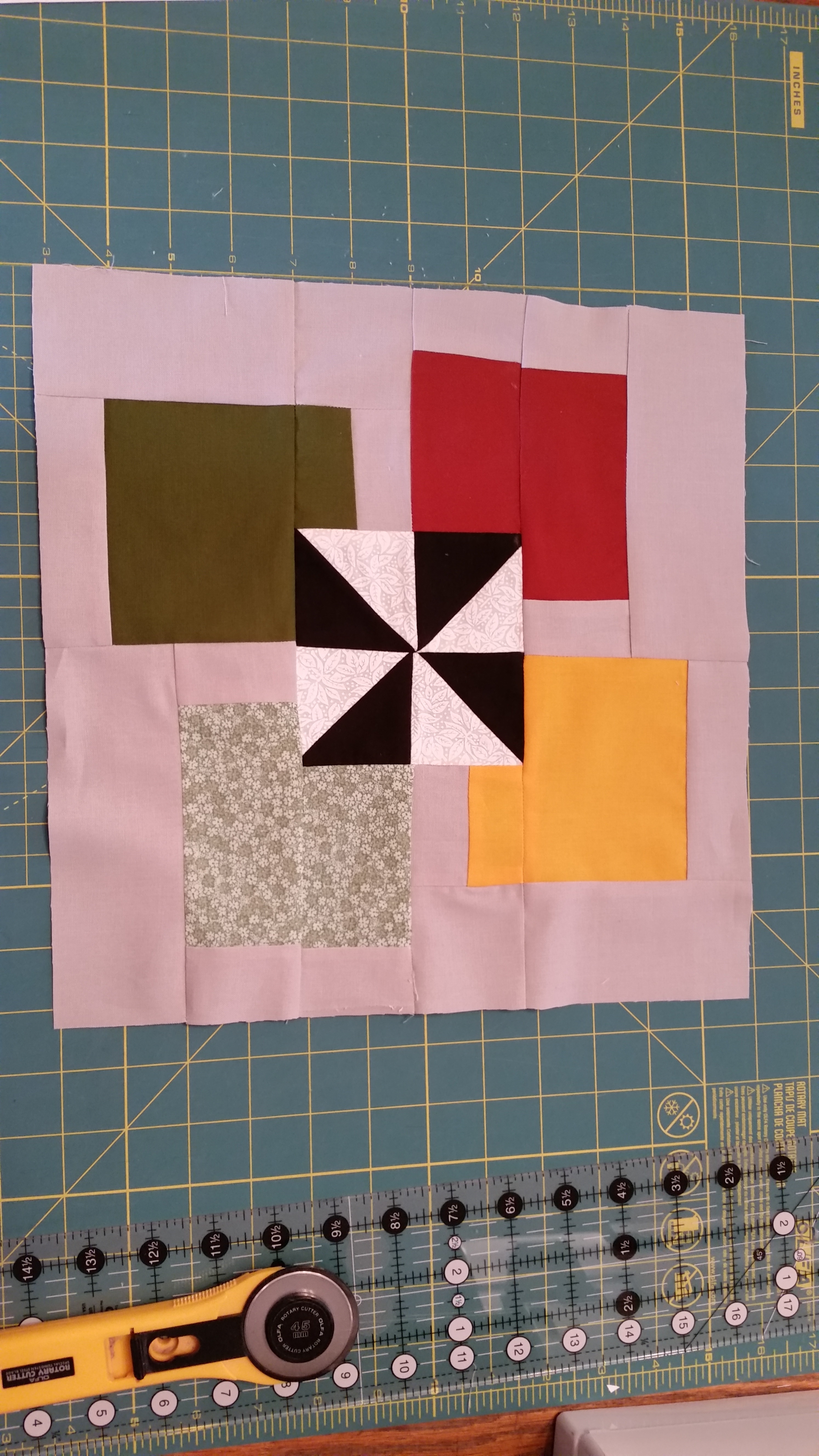 I love this block so much. It is modern in it’s feel and that is so me. It is called Fast Track by G. Erla on page 54. It is a bit more complicated to piece than at first look. I even had colors similar to what was in the pattern.