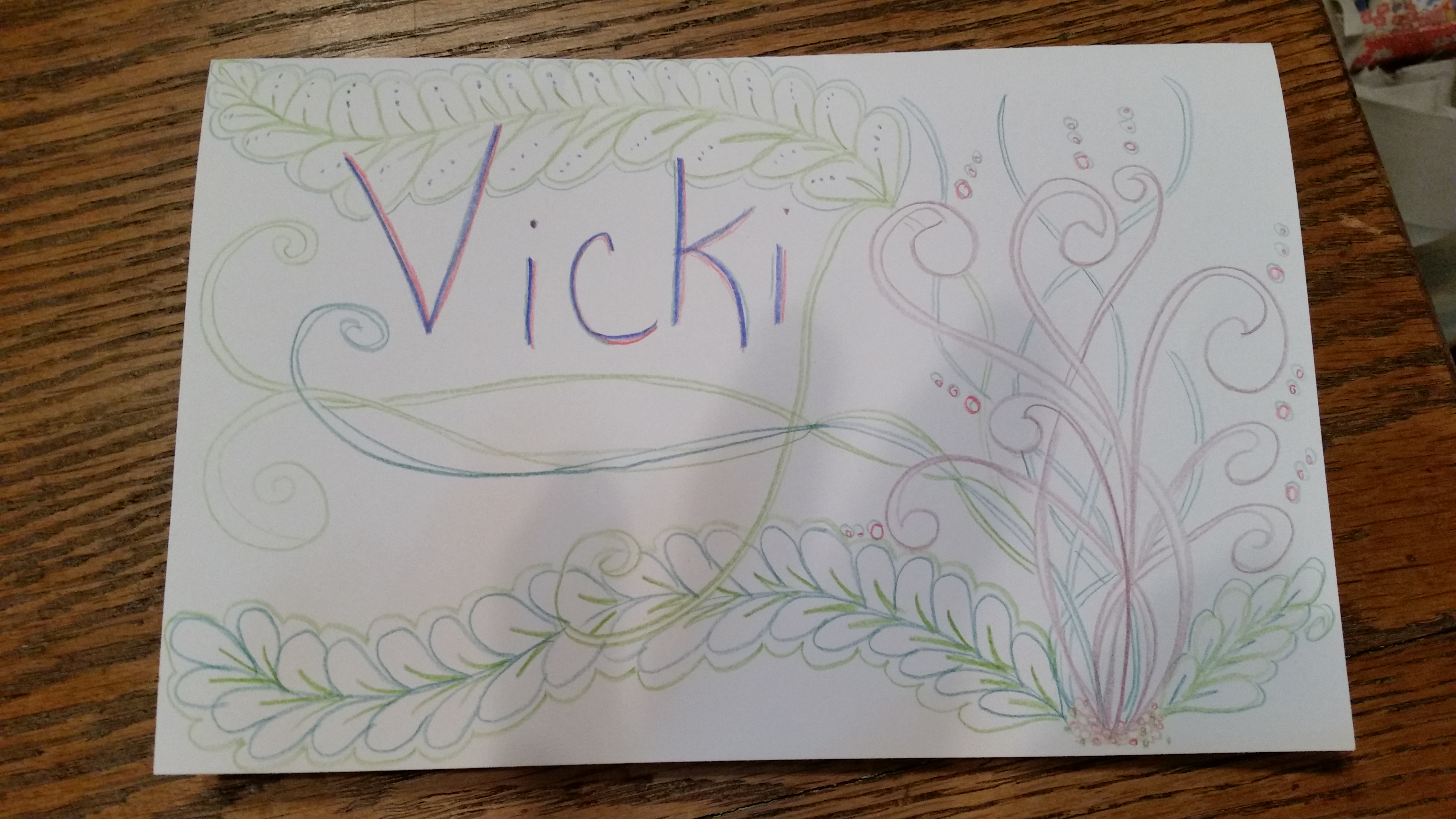 I am a constant doodler!!! At work, the backs of returned envelopes are typically turned into swirly FMQ designs. Scrap paper is made into mini-pads and words and FMQ designs are scrawled across them. My boss comes into my office and finds something artistically written on paper – like “Rhythm”. Meetings? Forget about! I’m totally doodling my fool head off. lol