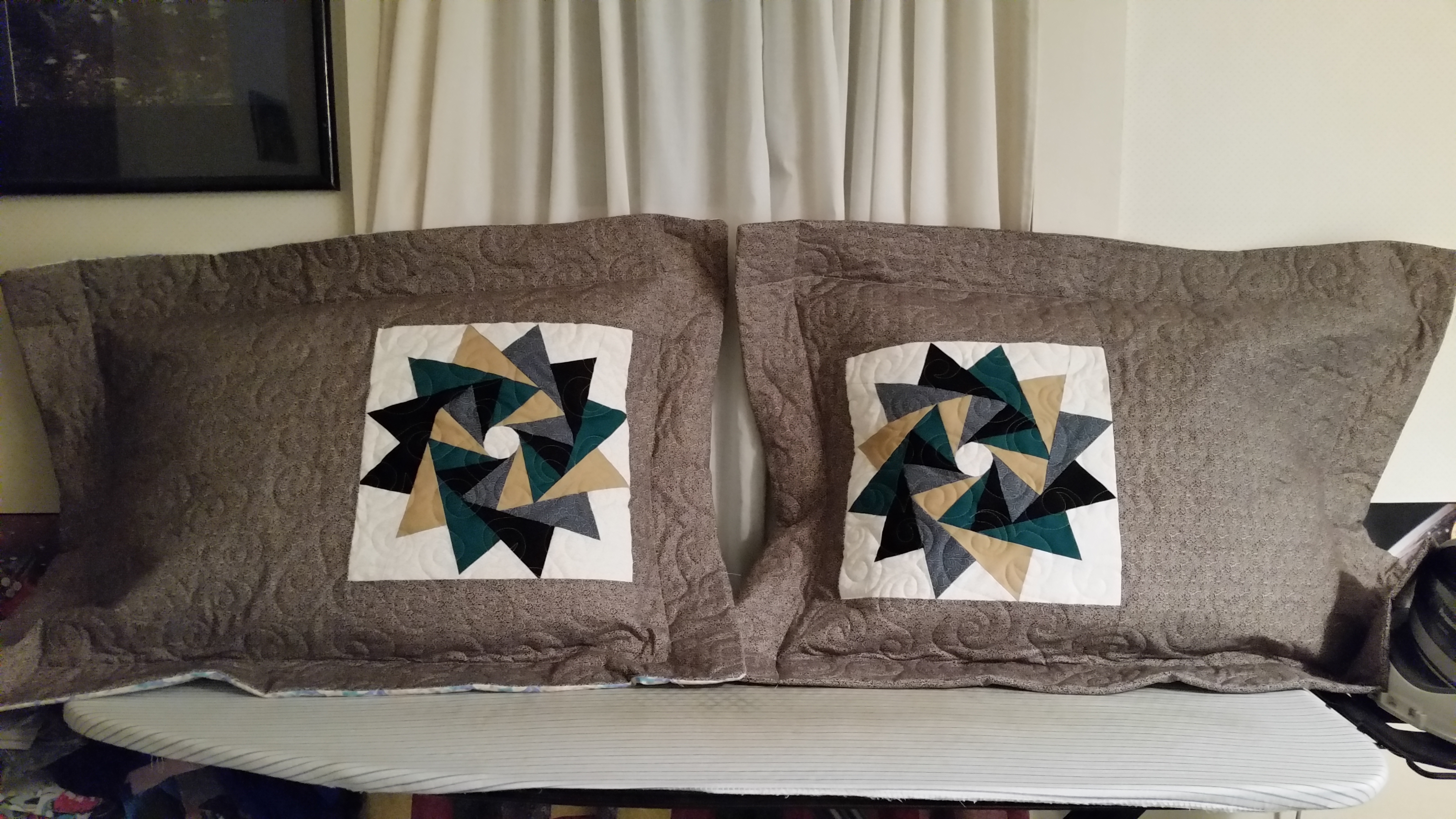 I made these pillow shams for my sister for Christmas. I love how these went together. I made these blocks as a test for Quiltmaker 100 magazine. I used my serger and felt like I put all of my sewing skills to the test for this… hems, quilting, piecing etc. I am thrilled that she liked it because I wasn’t sure.