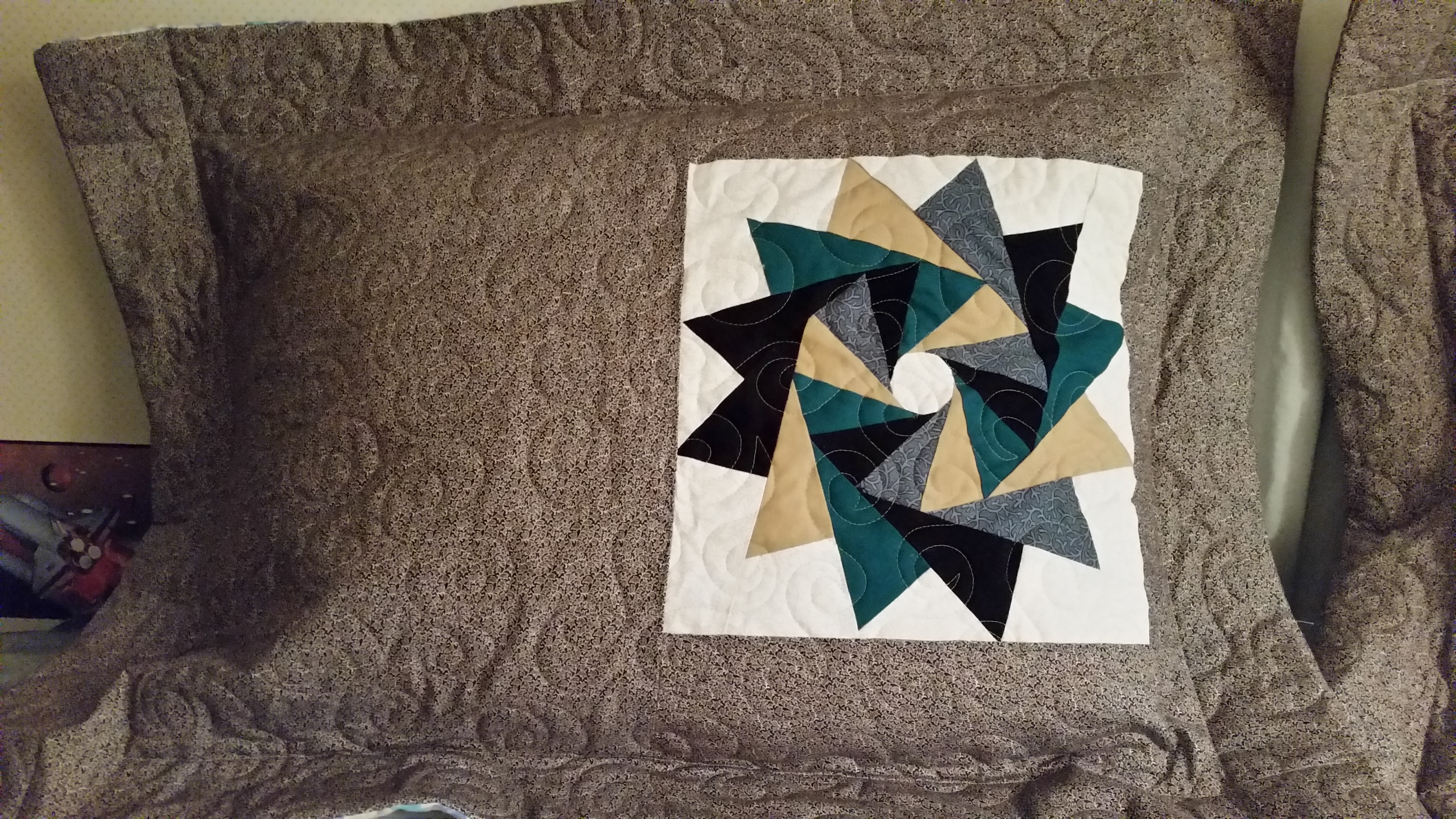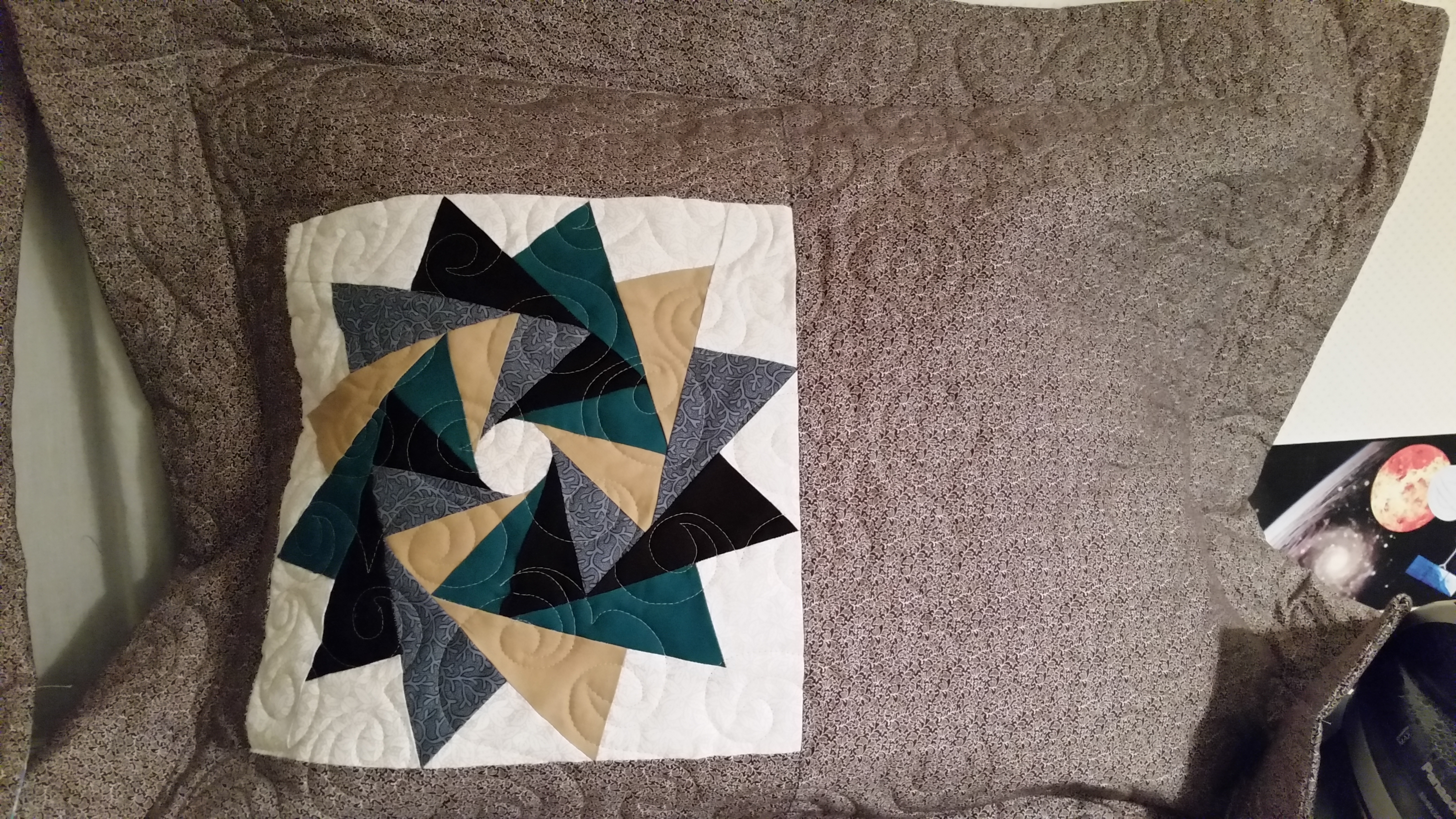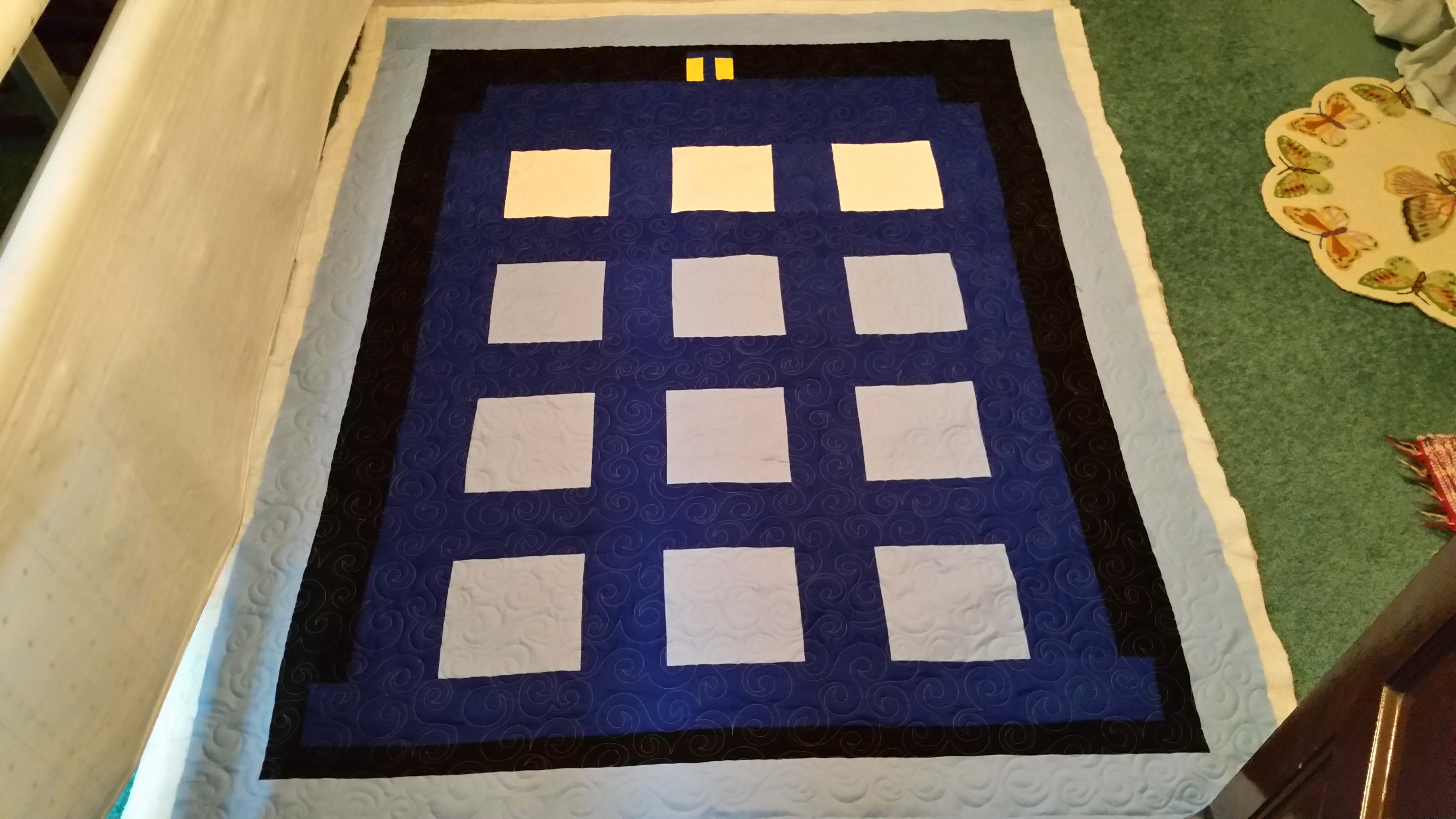 This picture of the quilt doesn’t show the pretty blue color.