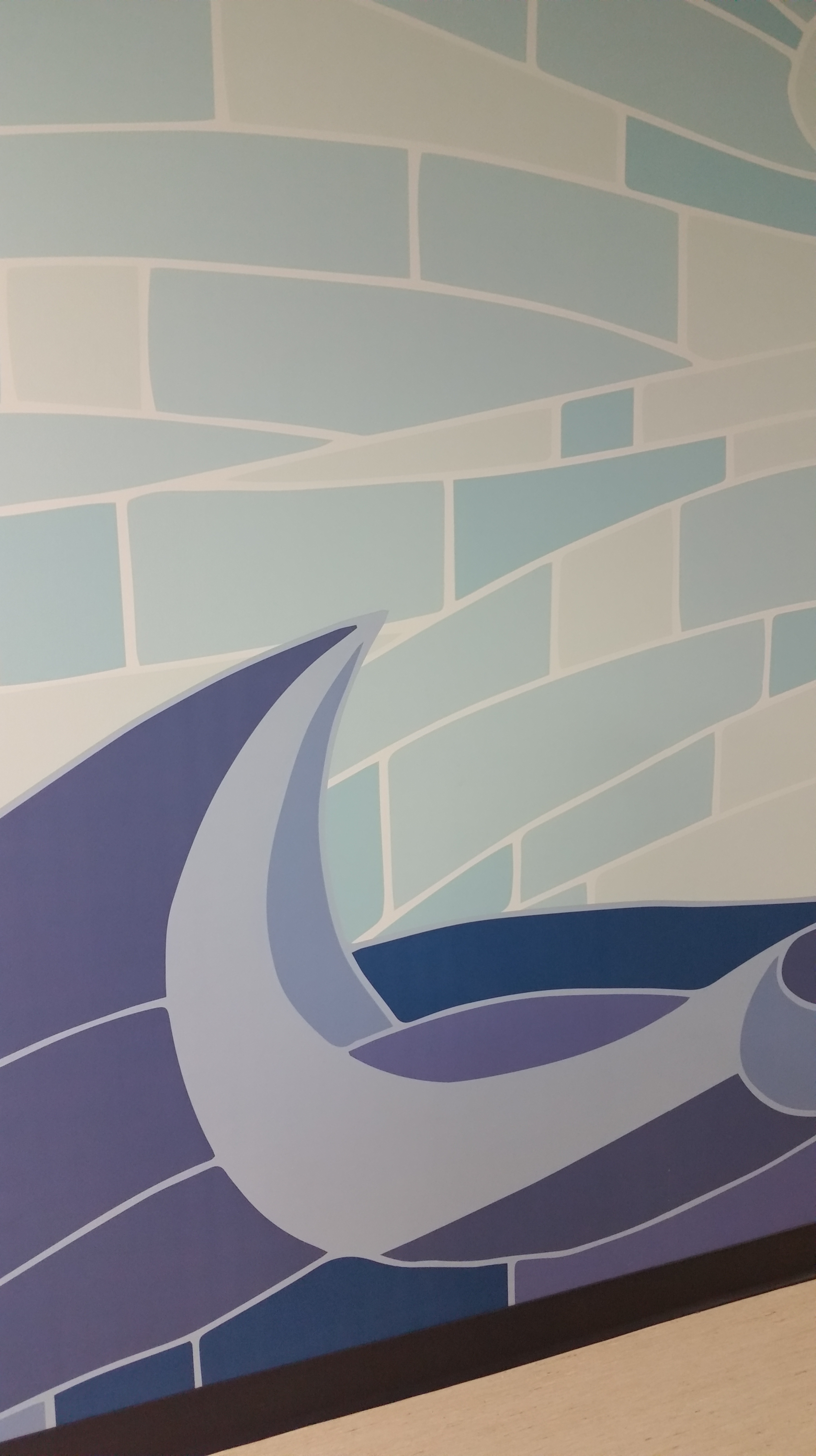 Monday was a long day. We spent the day in the surgical waiting room. I knitting and took pictures that were inspiring for quilts. I love the wavy texture and color placement. The mural is cool. It was many hours of waiting with other family members who were tired and stressed. I was so appalled at peoples behaviors, it never ceases to amaze me. One family didn’t follow the rules of 2 people only. Another lady had a blanket and pillow. She spread out all over a couch. She got up for an hour and when returned her blanket and pillow had been removed by staff. She was mad that her seat wasn’t saved. Ya real grown behavior. Yikes what is this country coming to. By the way, my mother in law had her bilateral mastectomy and is home healing. Now the flurry of follow up appointments to come.