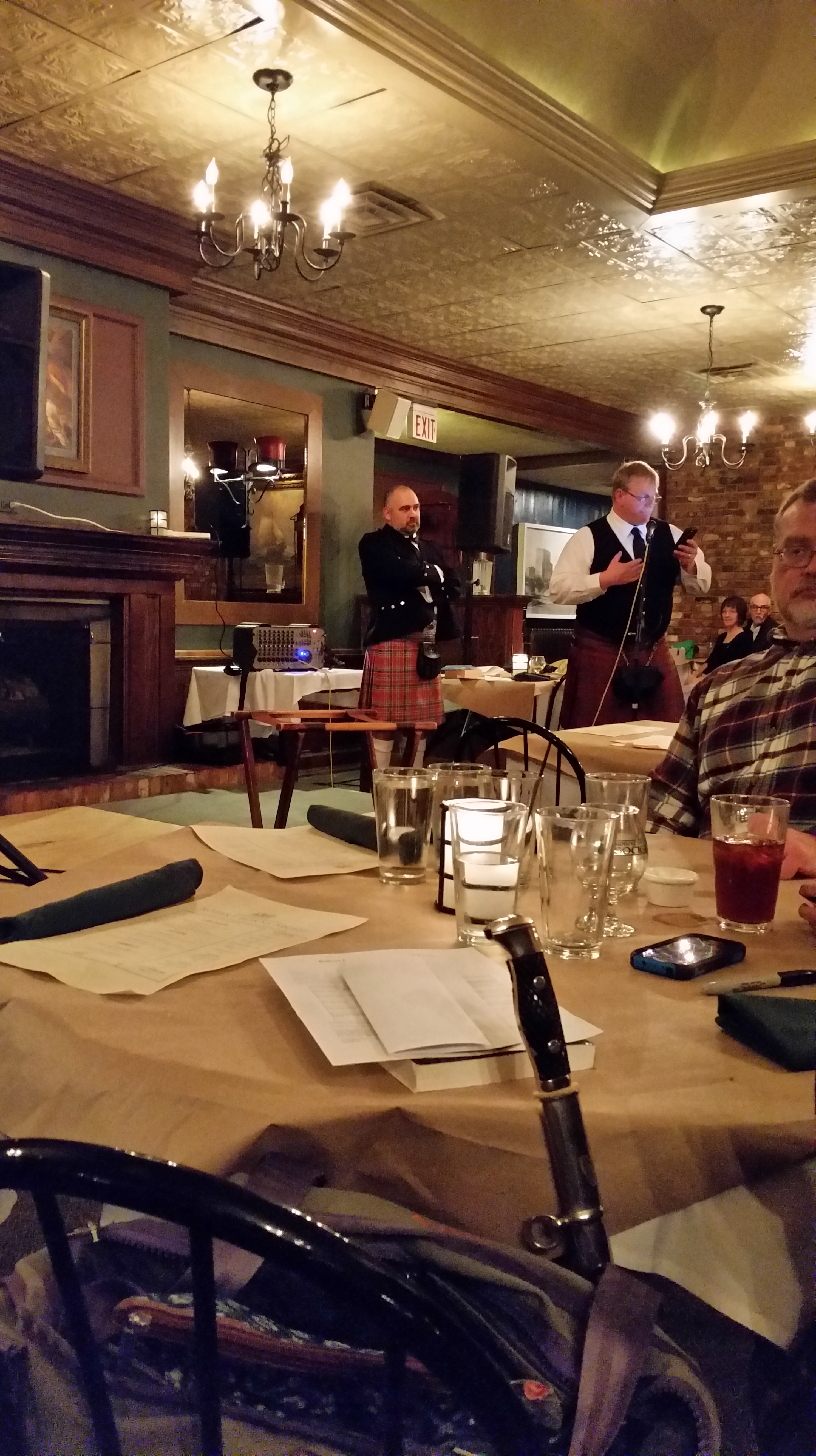 And a couple of pictures of a Robert Burns Dinner we attended on Saturday. I love this event, it is a time to hear Celtic music, hear poetry being read, listening to bagpipes and see Highland dancers. We dressed with our tartans displayed, had a wonderful dinner and celebrated all things Scottish. Of course, there was Haggis, but I passed on it and had Bangers and Mash.
