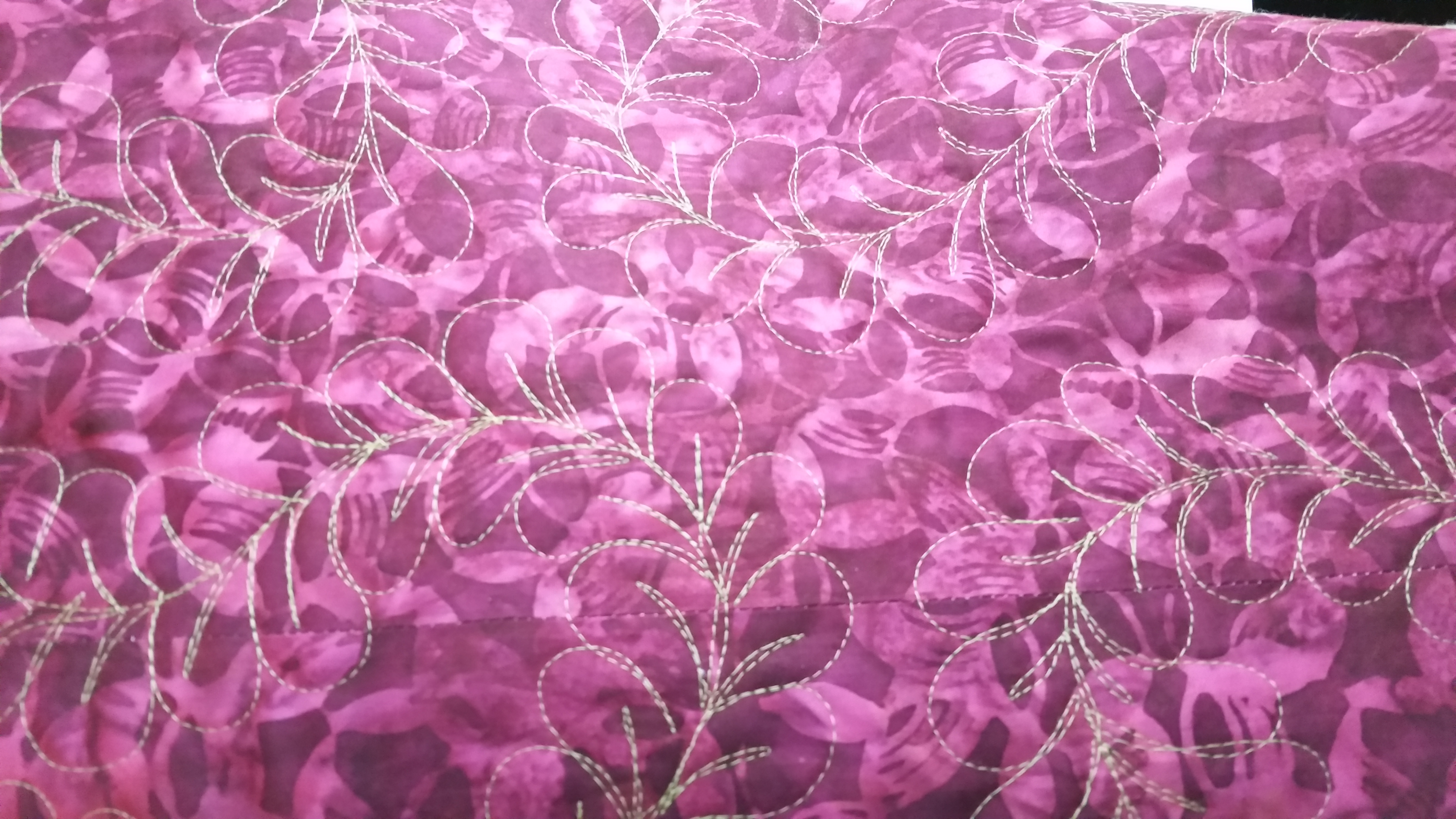 nope no pictures of the great reorganization project but a sneak peak at a completed quilt that just came off the long arm frame….. one of my favorite stitches in my favorite color on a fabulous fabric.