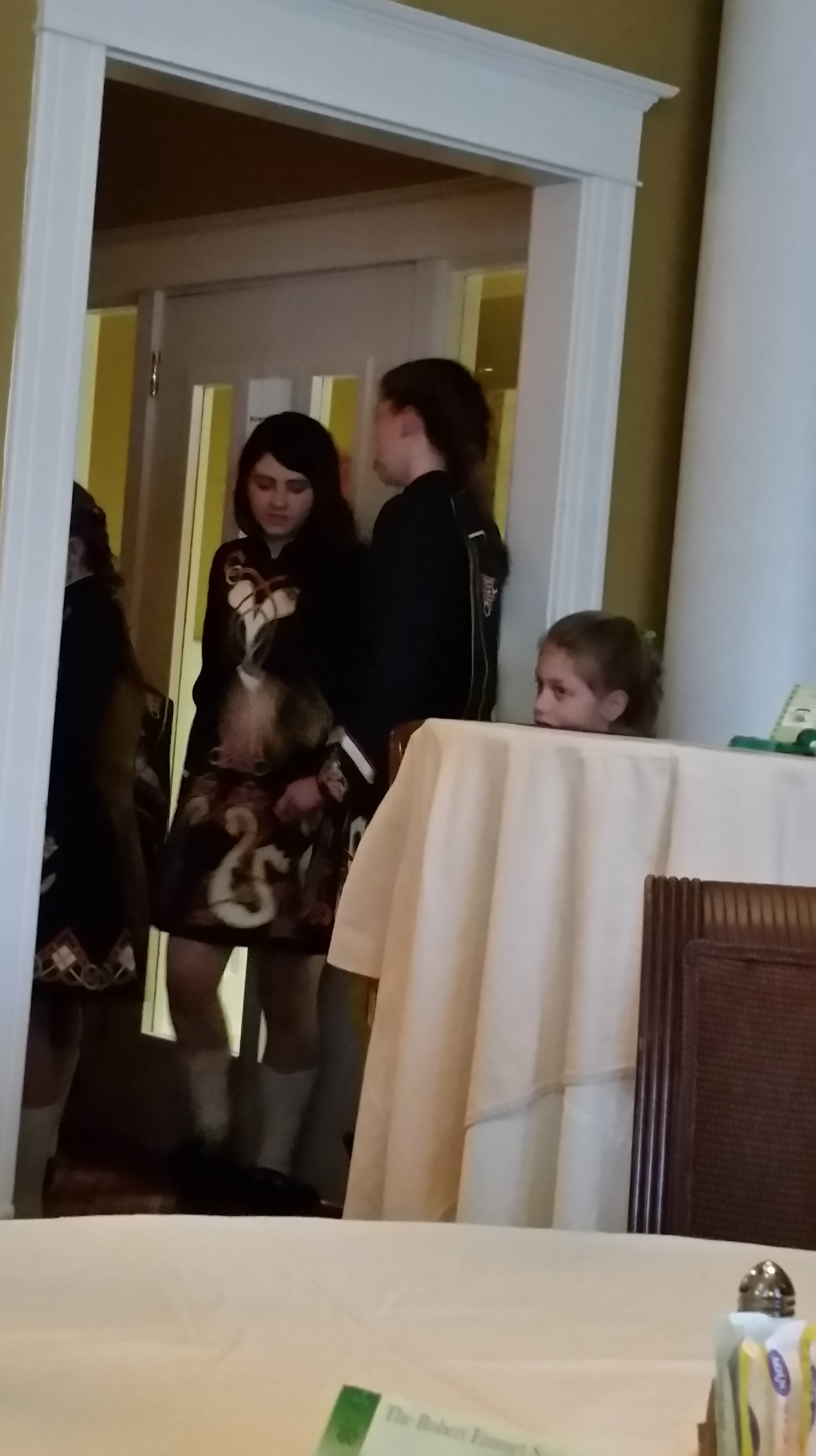 Being Silly and having dinner. We won silent auction items, a beelek porcelain trinity knot and a print. We won door prizes a t shirt and a glass. Then we stayed at the historic hotel that the Hooley was held at. A great date night!