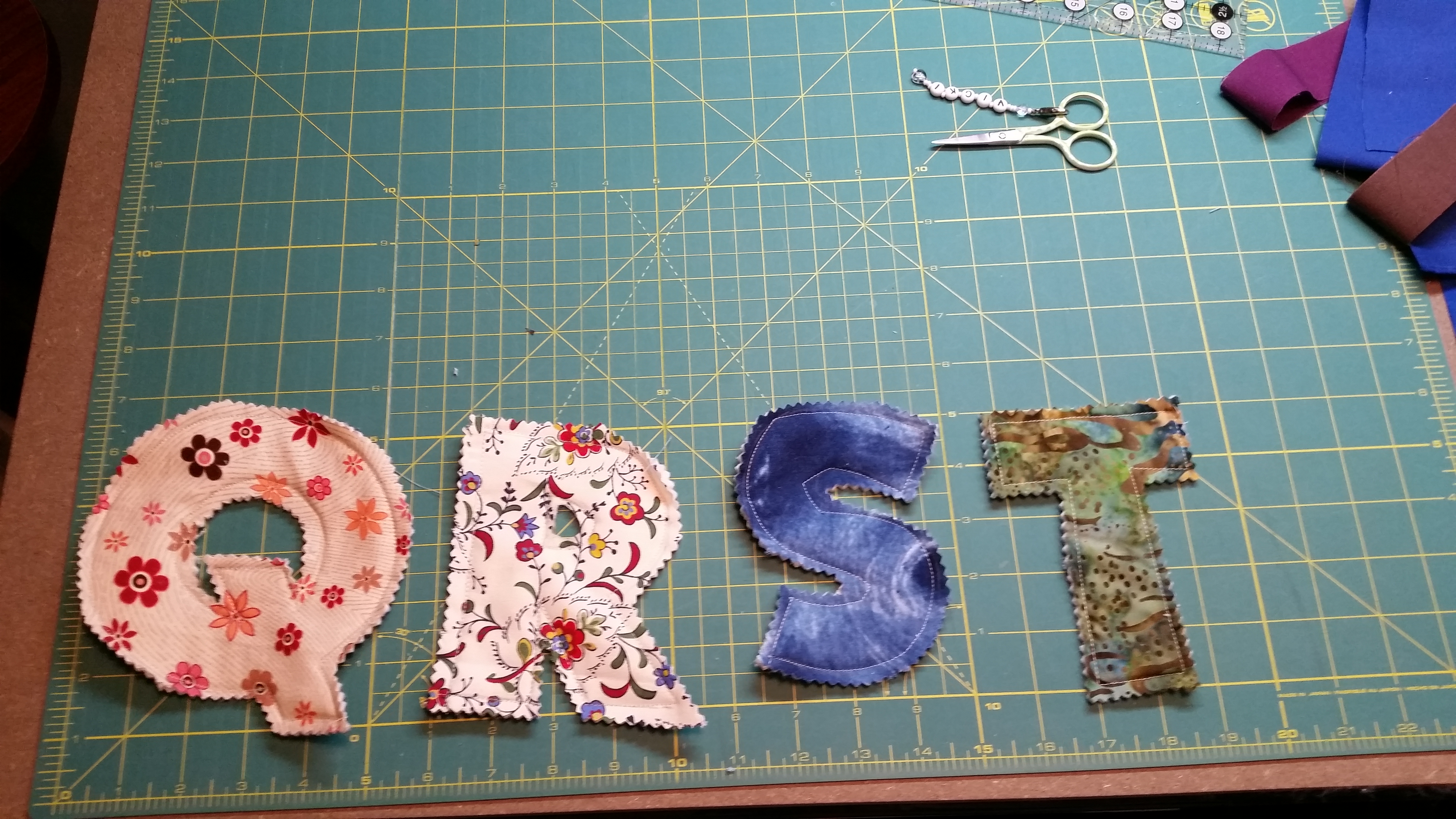 And I am approaching the end of the uppercase letters for the grand kids. I have had fun with these tiny quilted letters so lowercase and numbers may be in the future. I have all the scrap fabrics and batting on hand, so why not?