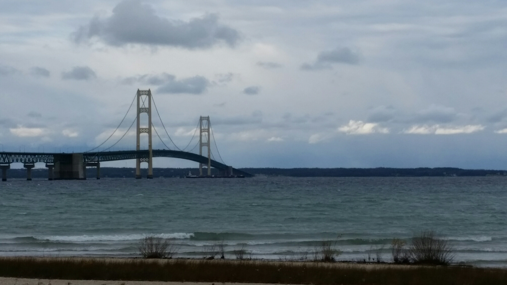 This is more fabrics from Hancock’s, I am not making the pattern on the Morrison brights but I am sure that I will come up with something, Lastly, some pictures from an outing Saturday. Look close andunder the Mackinac bridge is a frieghter . Our timing was good.