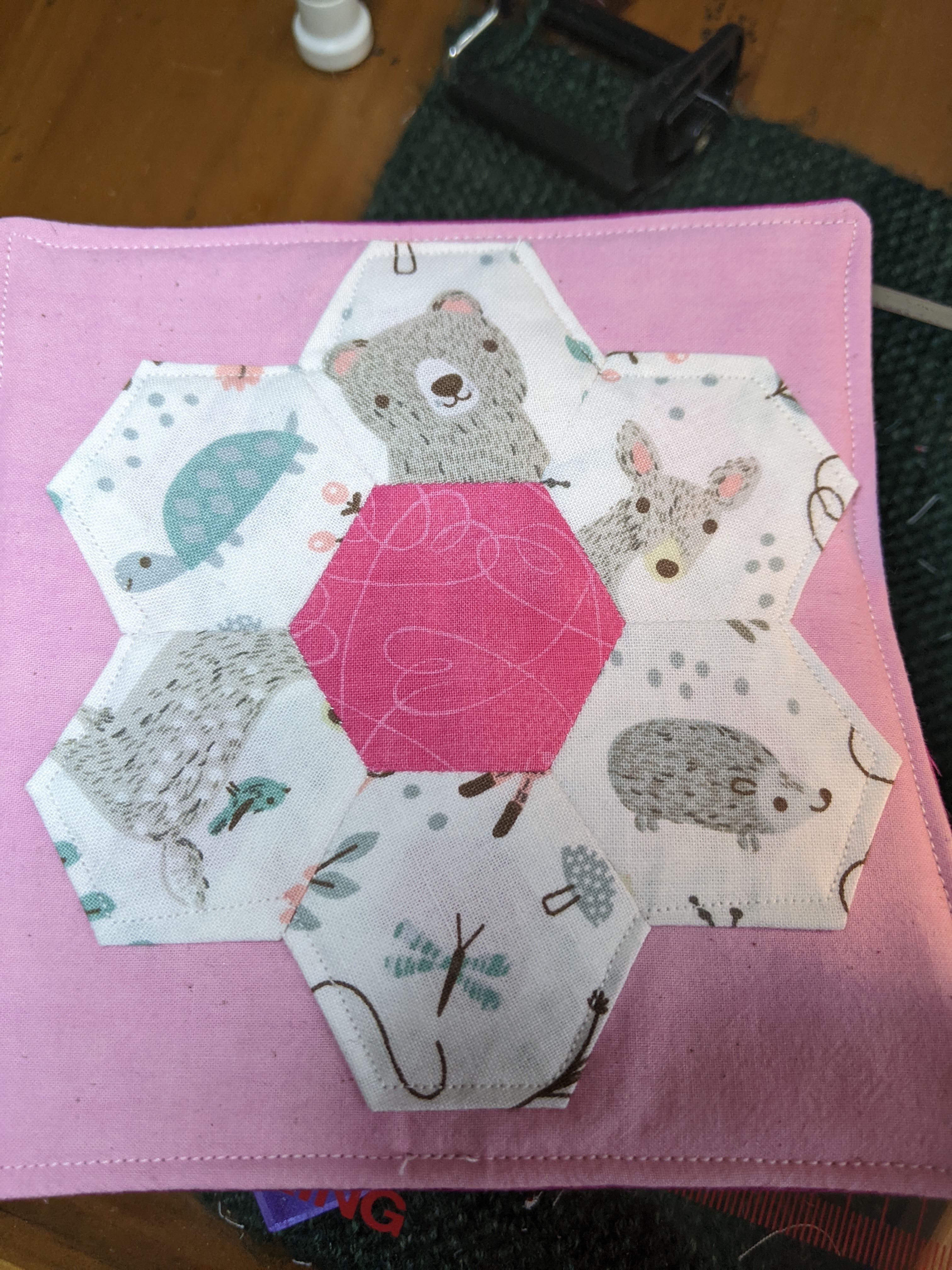 This valentine used up three of the hexie flowers I sewed last summer. You could use a heart or any other shape you would like! I am filling the pocket with a little valentine note and candy before I mail them off!