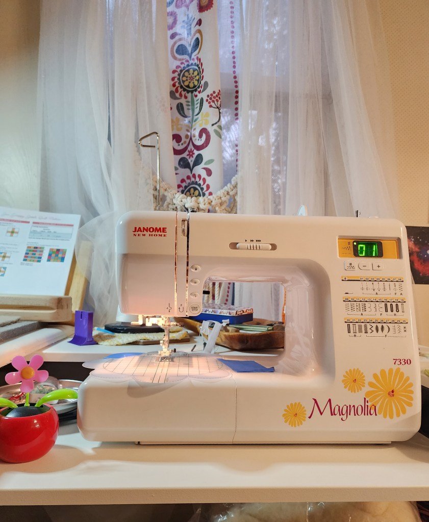 This week I have cross stitched part of the acorn for the Autumn Days ornament, and I sewed one courthouse stairs block. I start to feel that I used to get so much more done a week and have kids at home. I am honestly enjoying the slow process of making right now and I have to remind myself that I was very different back then with my health and motivation for making. I was making a little extra money back in the day by either making quilts, long arming or selling crafts for extra money. Now it’s purely for the joy of it.