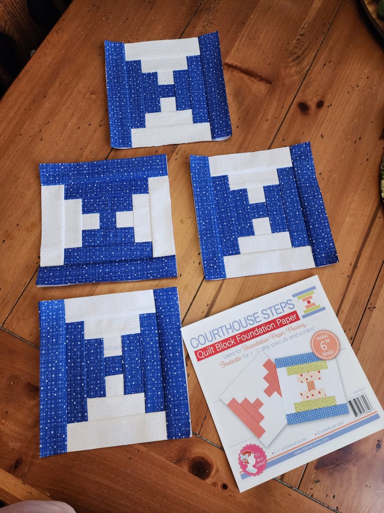 I have sewn up my courthouse stairs blocks for the Petite Four QAL. I am using the 6-inch fpp pads by FQS. I decided to make all of mine from the same fabric. The paper makes sewing fun again!