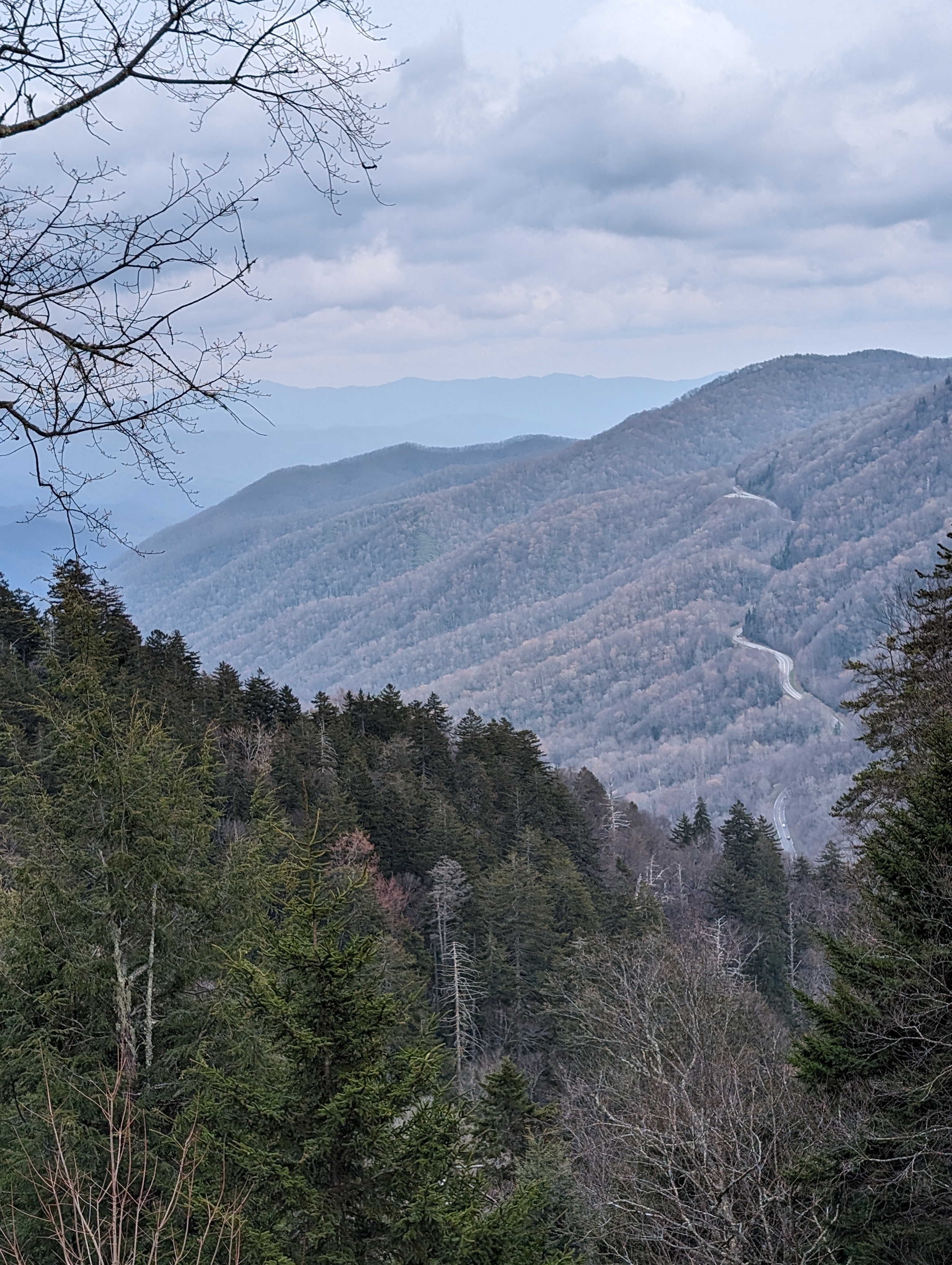 We spent time in the Great Smoky Mountains National Park looking at sights and we were able to drive to Clingman’s Dome which is one of the highest points at 6600 feet in elevation. It opened April 1. I couldn’t walk to the observation tower here because it was too strenuous of a walk. But the view was amazing! We also went to the observation tower in Gatlinberg and I did climb to the top there for the amazing views.