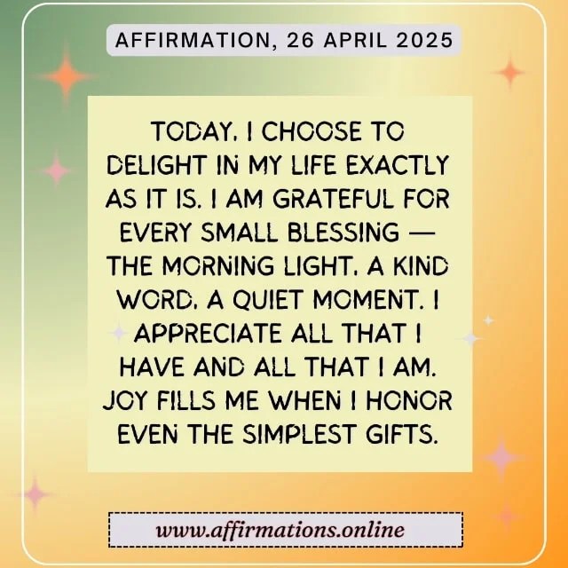 Today’s affirmation is a nice reminder that joy comes from each moment we mindfully live with gratitude and wonder. I just love this website and it gives me loads to think about.