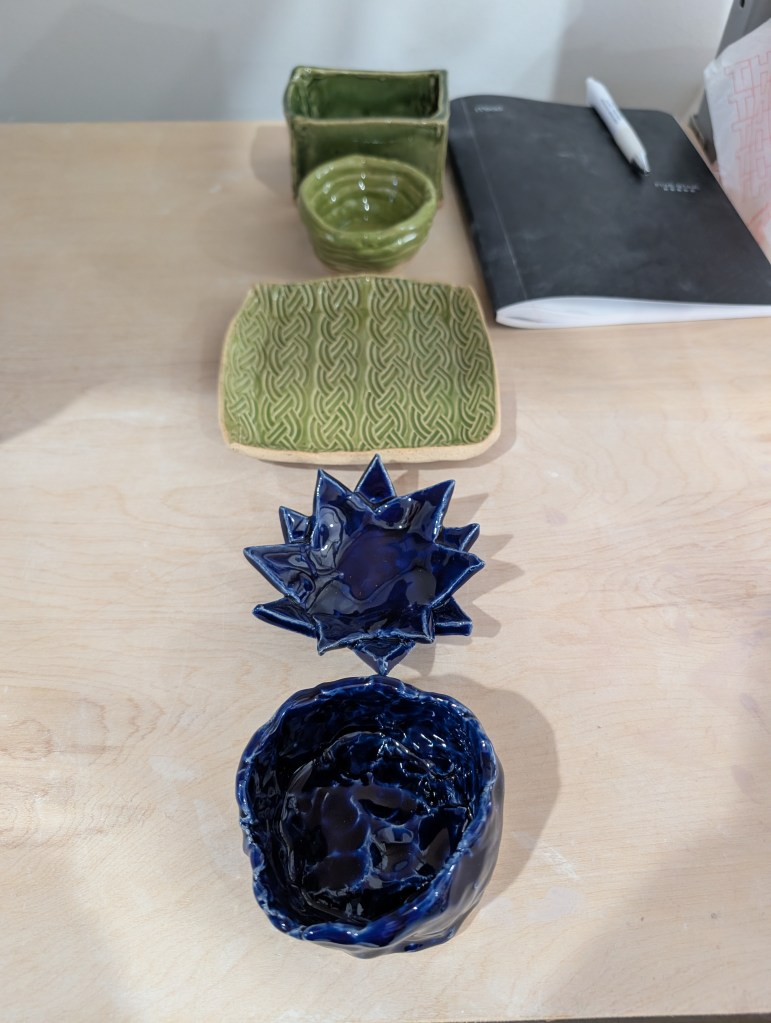 I hope you have had some fun experiences and novelty this week! I am looking forward to more and to glazing my pottery pieces to see the magical transformation after they come out of the kiln.