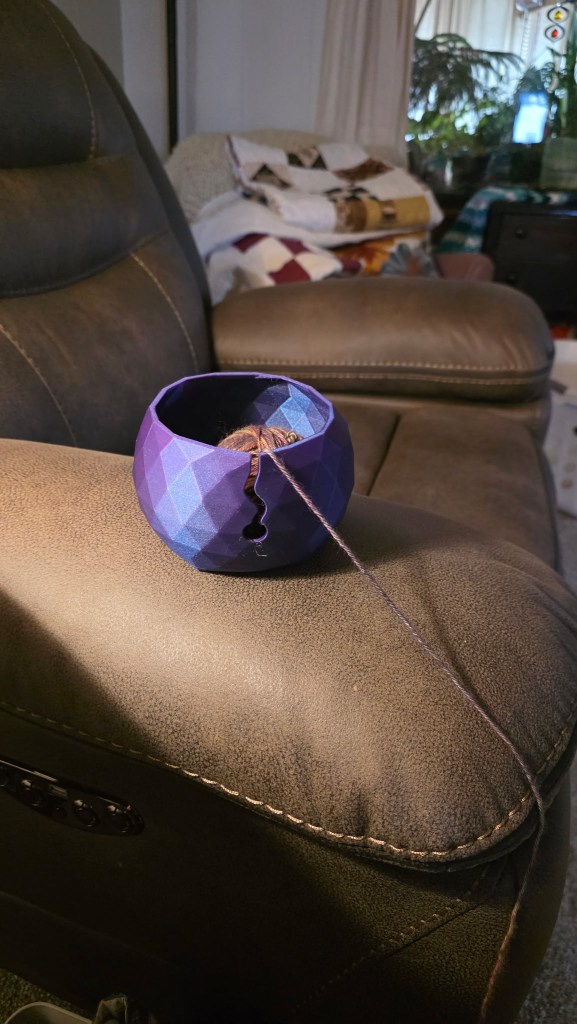 A yarn bowl! It works perfectly also when you run the yarn through the side of the bowl minimizing tangles and to come easily off the cake!