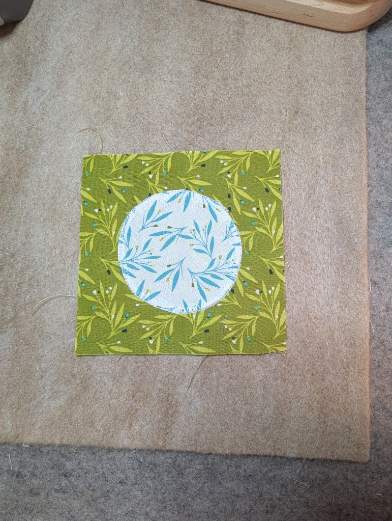 Angel made it super easy. She had a novel idea on appliquing a circle to the background block. She used interfacing and gave fantastic directions on her YouTube channel. You should watch it here!