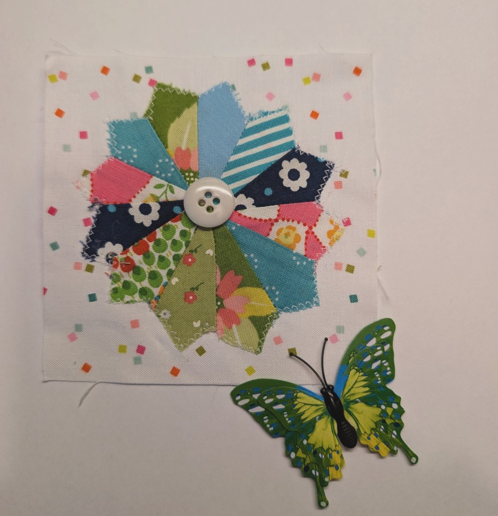 I sewed the last block in the Fantabulous Scrappy Stars qal and I have the rows assembled. Look at this tiny 4.5 inch Dresden plate!